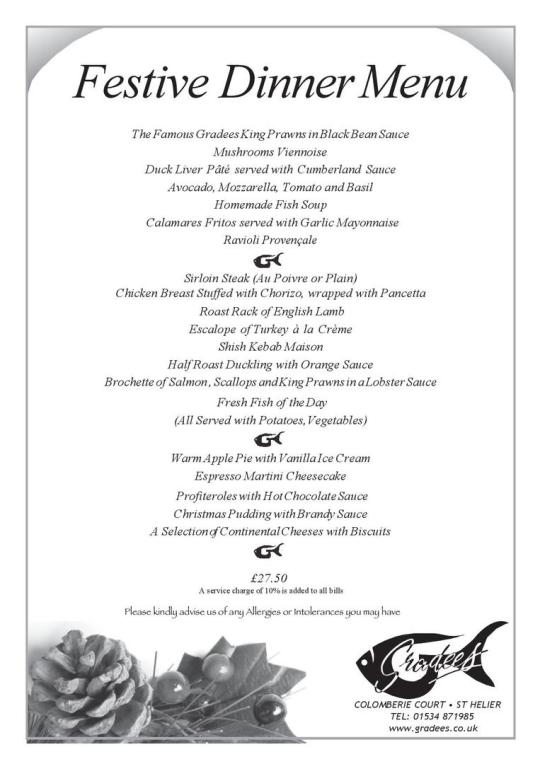 Set Menu is Available          Tuesday to  Saturday  for Lunch & Dinner    Please Phone       01534 871985            to book a table.